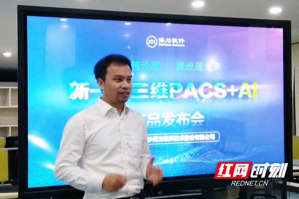 博为软件董事长梁威讲解新一代三维PACS+AI产品。