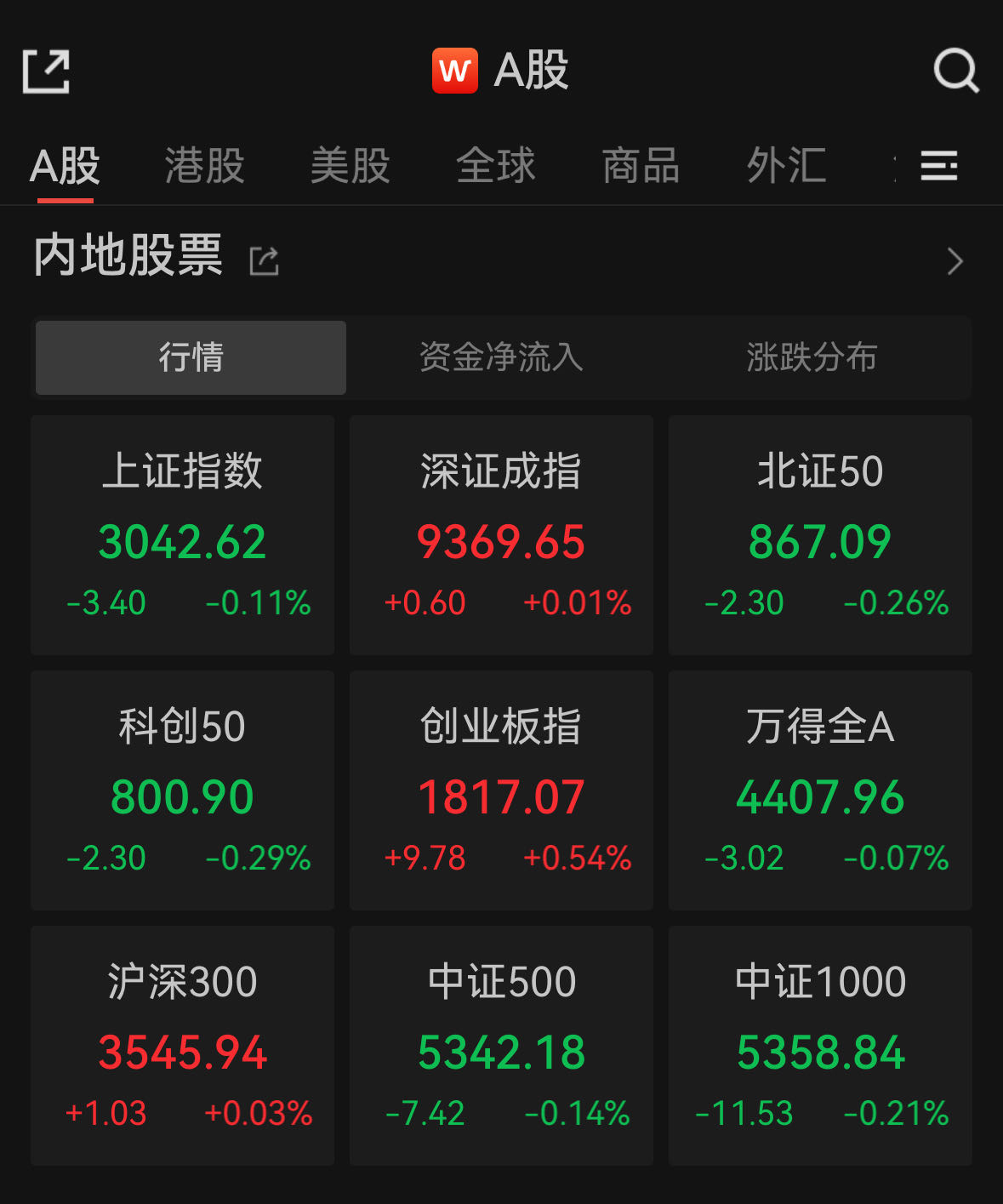中新经纬3月11日电 周一,A股三大指数涨跌不一,沪指跌0.11%报3042.62点,深证成指跌涨0.01%,创业板指涨0.54%。